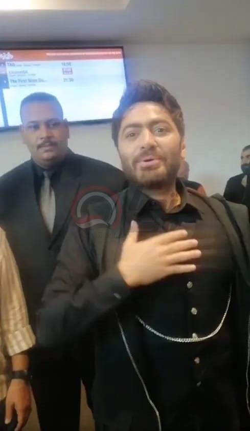 حبايب قلبي.. استقبال طريف من تامر حسني لـ موقع تحيا مصر على هامش عرض فيلم تاج