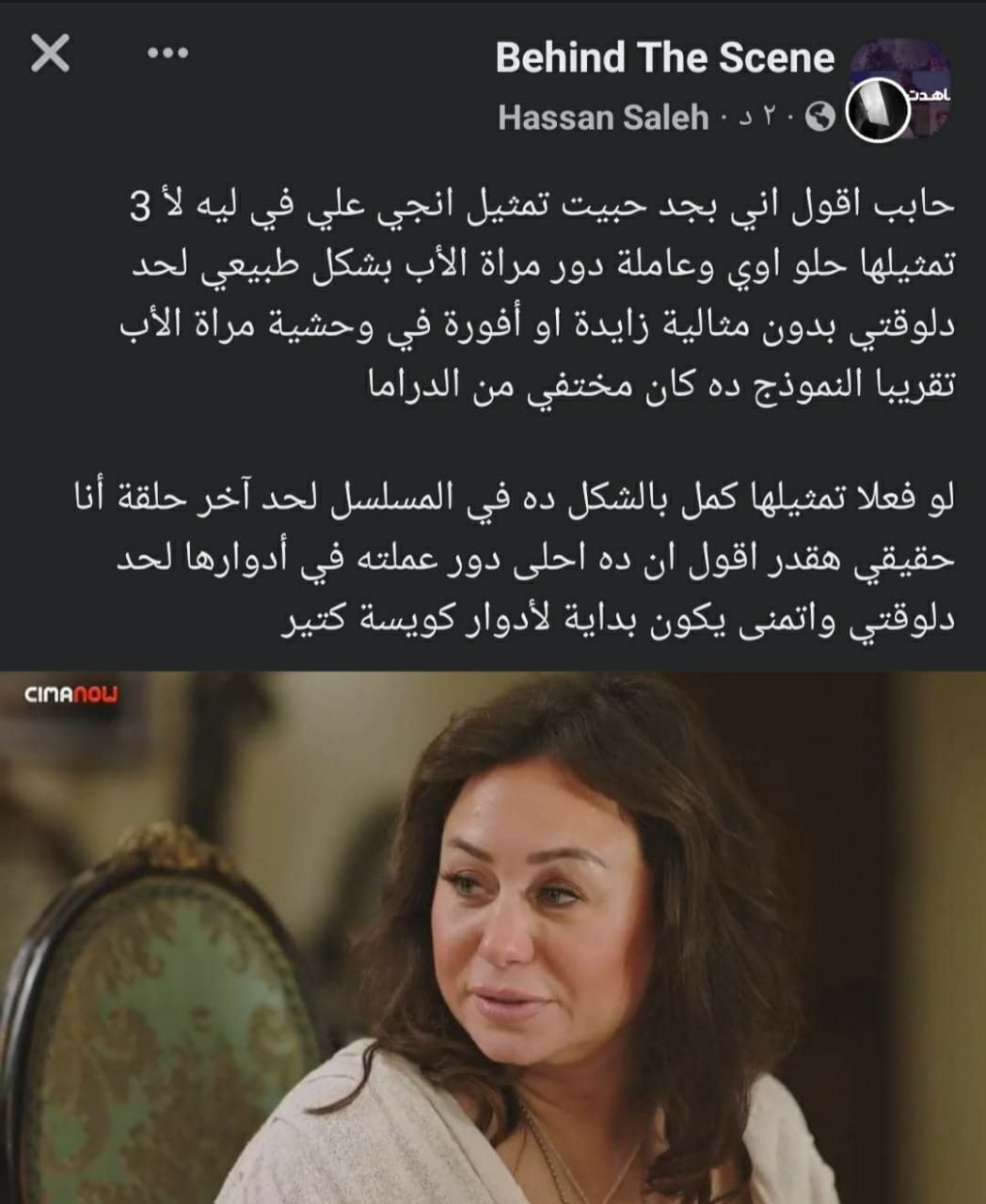 وتابع: “لو فعلا تمثيلها كمل بالشكل ده في المسلسل لحد آخر حلقة أنا حقيقي هقدر اقول ان ده احلى دور عملته في أدوارها لحد دلوقتي واتمنى يكون بداية لأدوار كويسة كتير”.