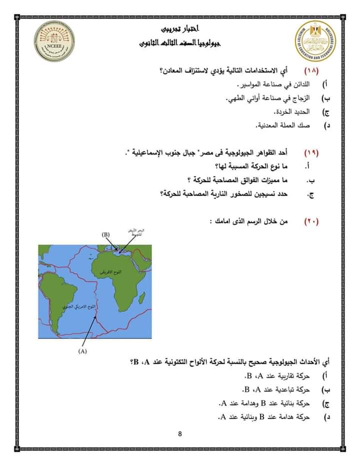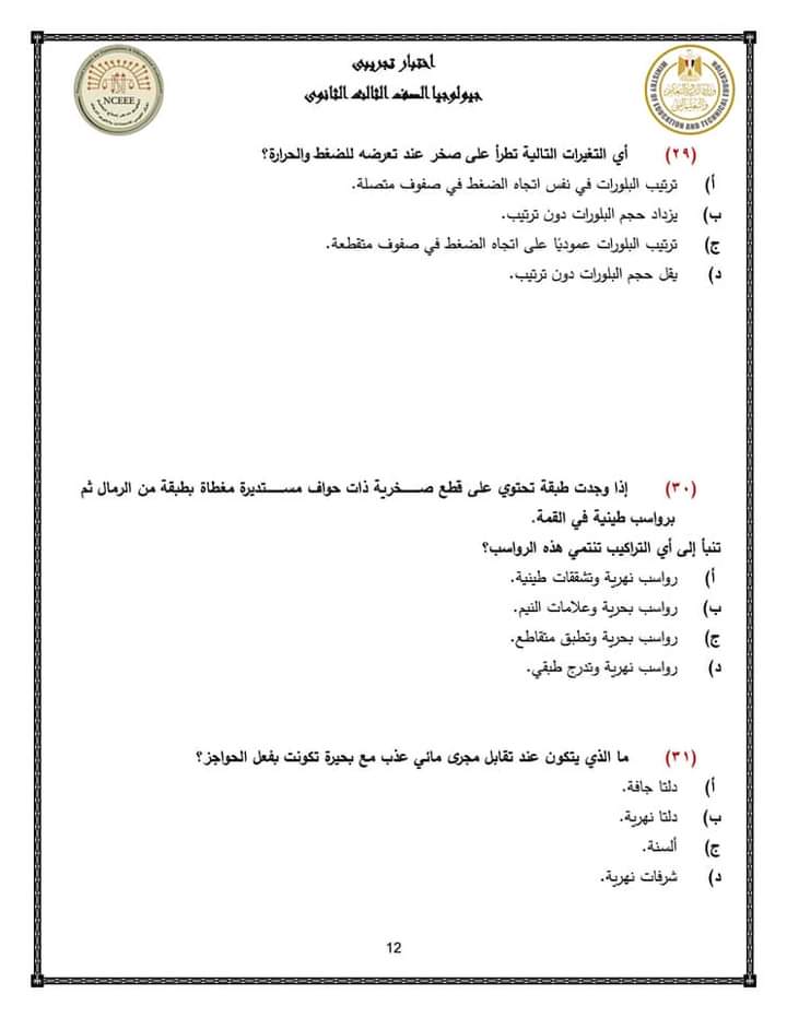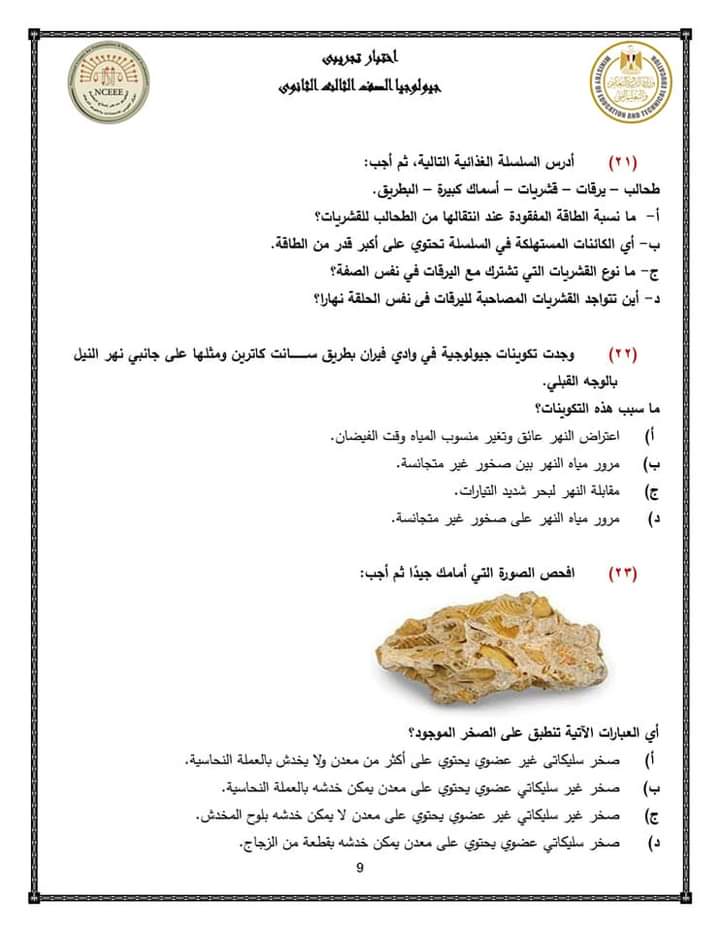ننشر نموذج امتحان الجيولوجيا للثانوية العامة 2023