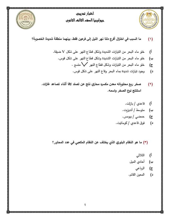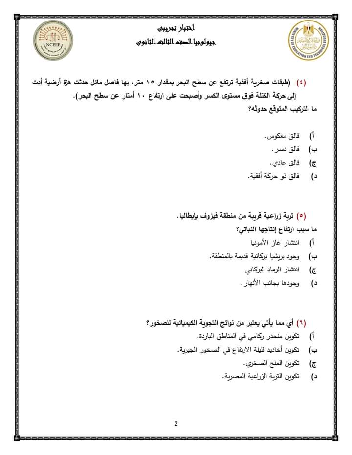 هتلاقي أسئلة منه يوم الأحد.. ننشر نموذج امتحان الجيولوجيا للثانوية العامة 2023