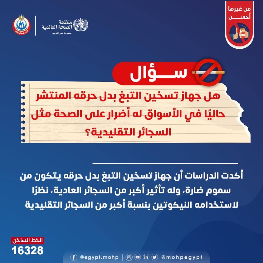 وردت وزارة الصحة على سؤال ورد إليها يقول: "هل جهاز تسخين التبغ بدل حرقه المنتشر حاليا في الأسواق له أضرار على الصحة مثل السجائر التقليدية؟.