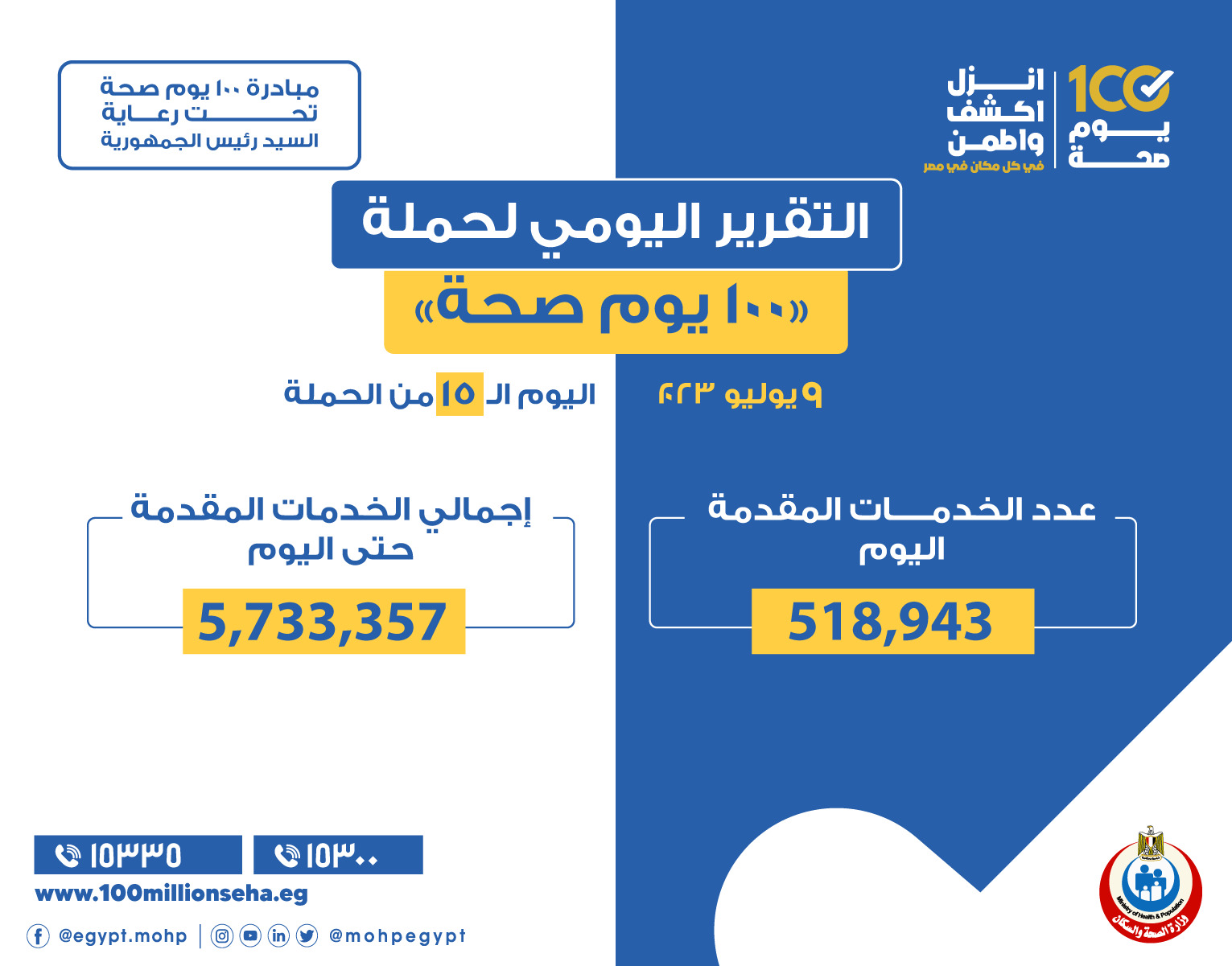 «الصحة» تعلن التقرير اليومي لحملة «100 يوم صحة»