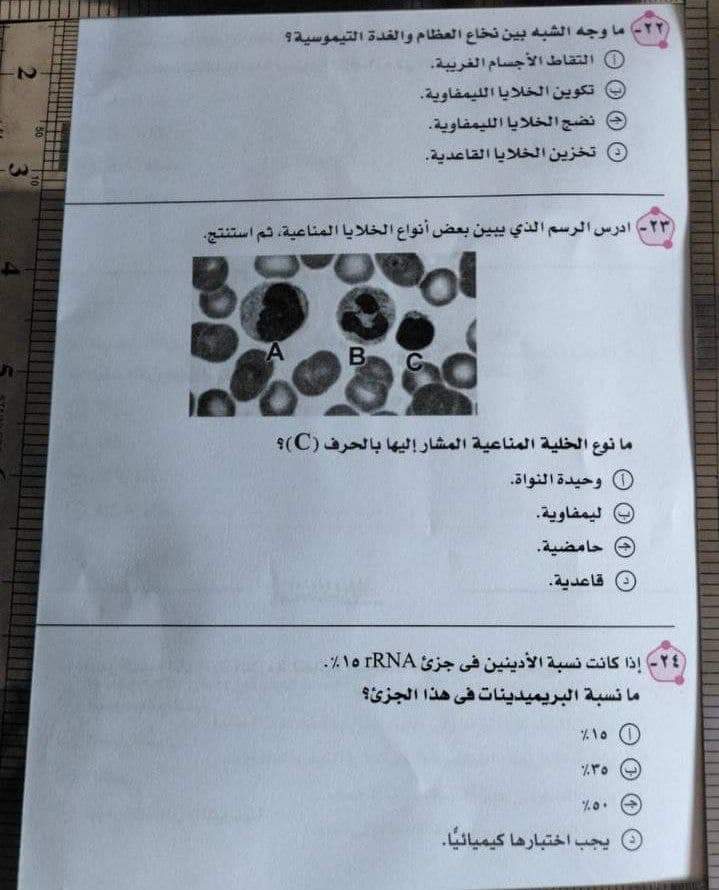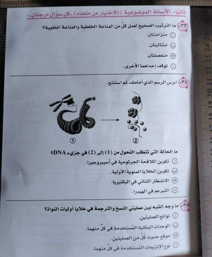 وجاءت إجابة امتحان الأحياء للثانوية العامة 2023 كالتالي: