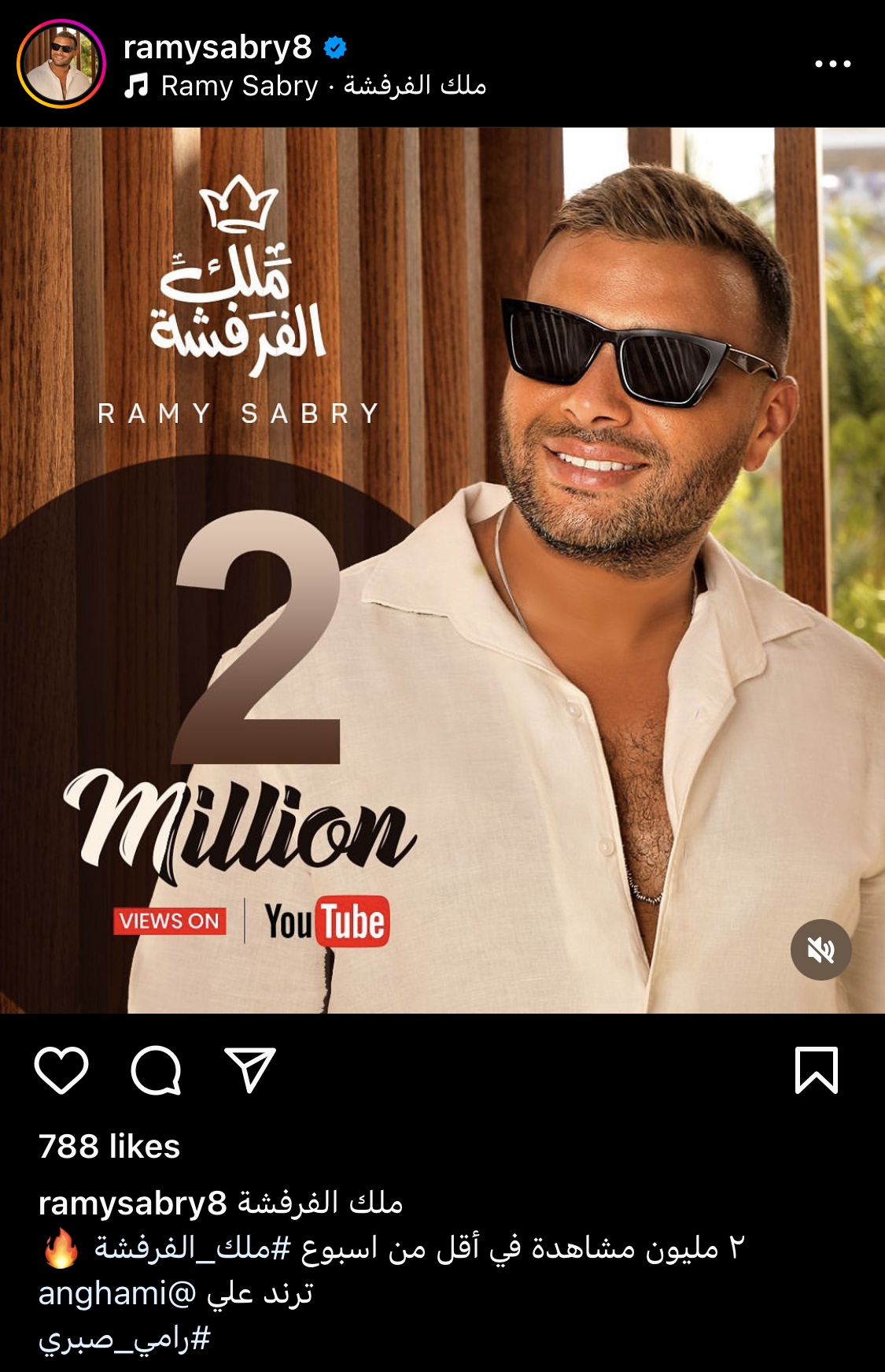 وأعرب رامي صبري عن سعادته بوصول الأغنية لـ 2 مليون مشاهدة على يوتيوب، وكتب رامي عبر حسابه بموقع تبادل الصور والفيديوهات انستجرام: ملك الفرفشة 2 مليون مشاهدة في أقل من أسبوع وتريند على أنغامي .