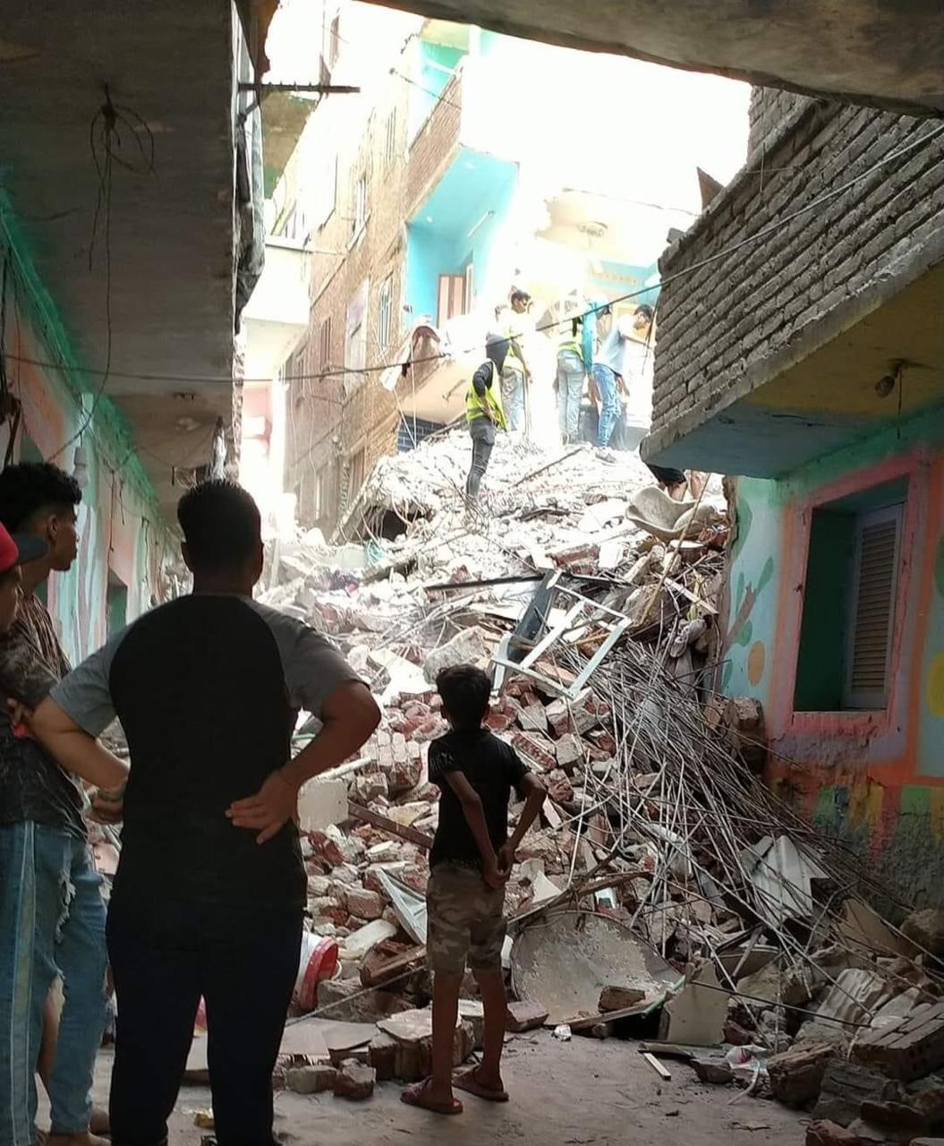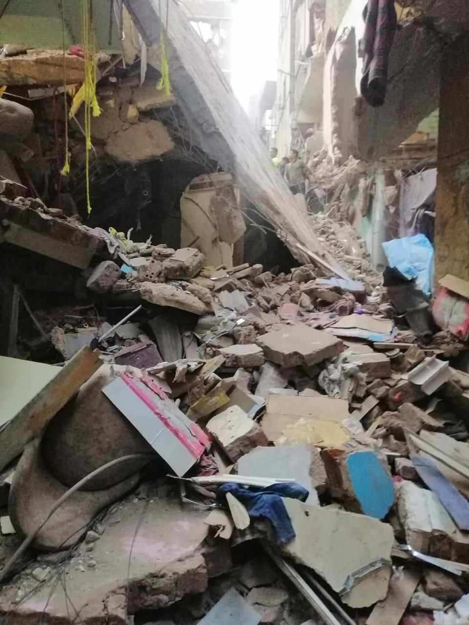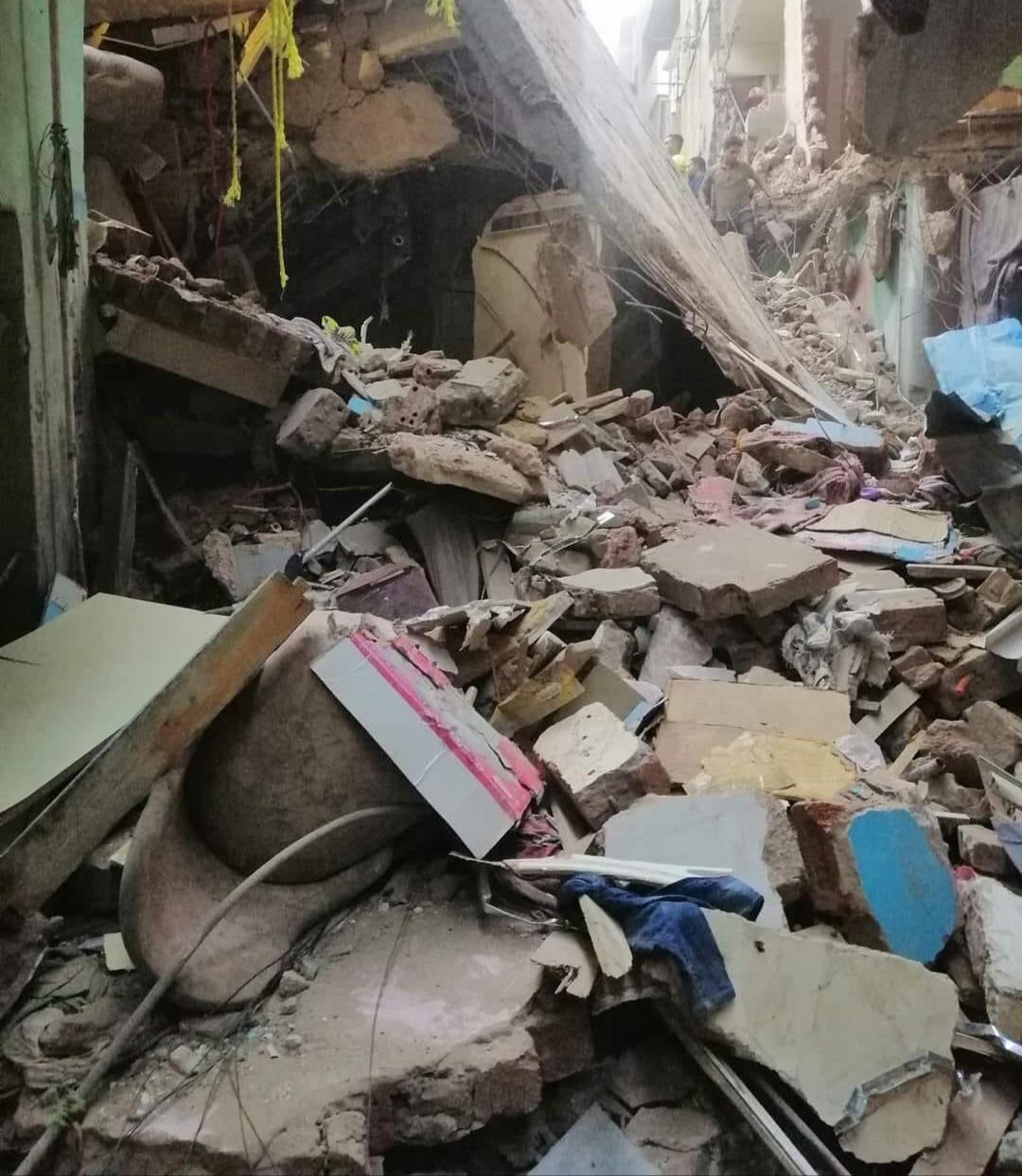 تحرر المحضر اللازم وجاري البحث عن ضحايا أخرين أسفل الأنقاض.