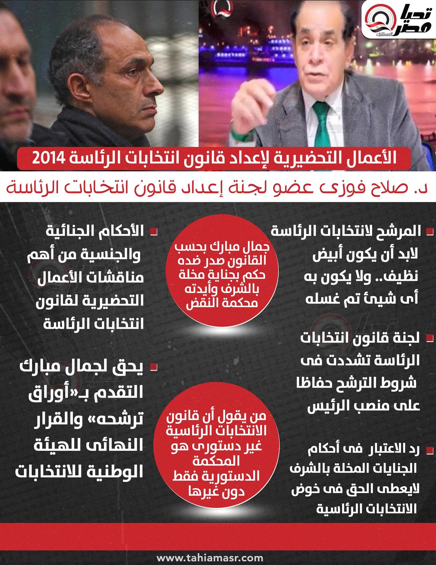عضو لجنة إعداد قانون الانتخابات الرئاسية:يحق لجمال مبارك «التقدم بأوراق ترشحه»..والقرار النهائى للهيئة الوطنية