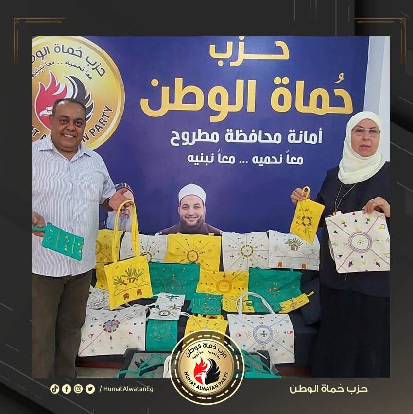 وفي سياق أخر منفصل، تستمر أمانة محافظة مطروح بحزب حماة الوطن في تنظيم معرض بأحدى الفنادق السياحية بمطروح، لعرض المنتجات اليدوية التي تعبر عن التراث السيوي والبدوي المطروحي للسيدات اللآتي تدربن بمبادرة طاقات الوطن المنتجة التي أطلقها حزب حماة الوطن لتمكين المرأة اقتصاديًا بكافة محافظات الجمهورية.