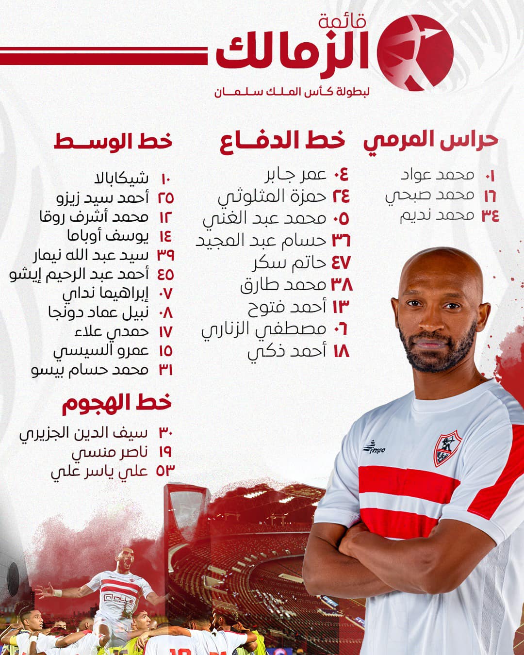 أعلن الجهاز الفني للفريق الأول لكرة القدم بنادي الزمالك بقيادة الكولومبي خوان كارلوس أوسوريو عن قائمة الأبيض التي ستسافر إلى السعودية مساء اليوم الأحد للمشاركة في البطولة العربية .