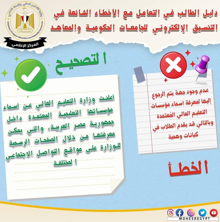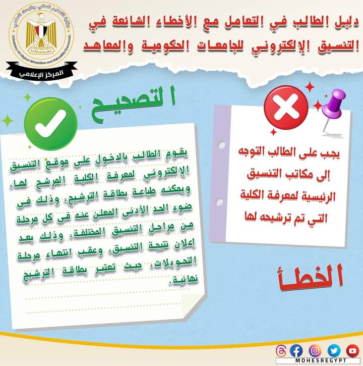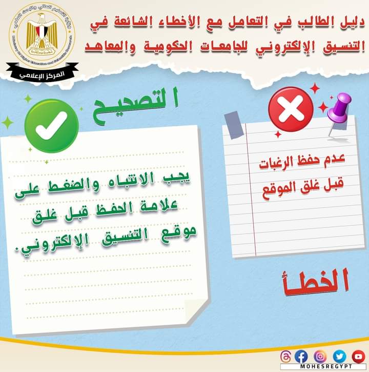أزاى تتعامل مع أخطاء تنسيق القبول بالجامعات الحكومية والمعاهد لطلاب الثانوية العامة