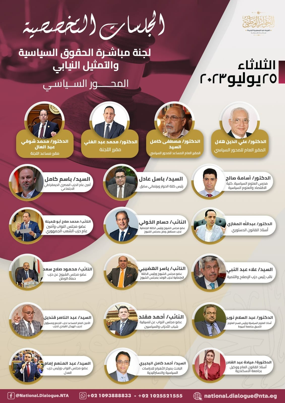 «خطوة جديدة في مسار الحوار الوطني، موضوعات شديدة الأهمية، قيمة مضافة للعمل الوطني»، حيث دخل الحوار الوطني محطة جديدة لأعضاءه اليوم، عقب صدور البيان الرسمي الذي أعقب أولى الجلسات التخصصية المغلقة بمقر الأكاديمية الوطنية للتدريب؛ لصياغة المقترحات والتوصيات الخاصة بقانون النظام الانتخابي بلجنة مباشرة الحقوق السياسية والتمثيل النيابي المدرجة على قائمة المحور السياسي.