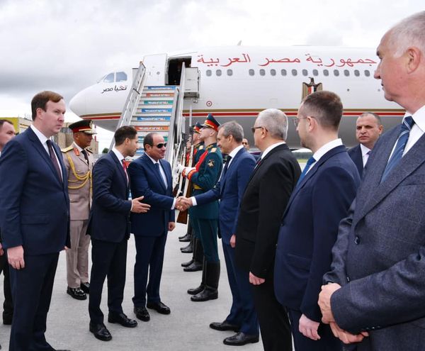 لحظة وصول الرئيس لمدينة سان بطرسبرج بروسيا للمشاركة في القمة الأفريقية الروسية