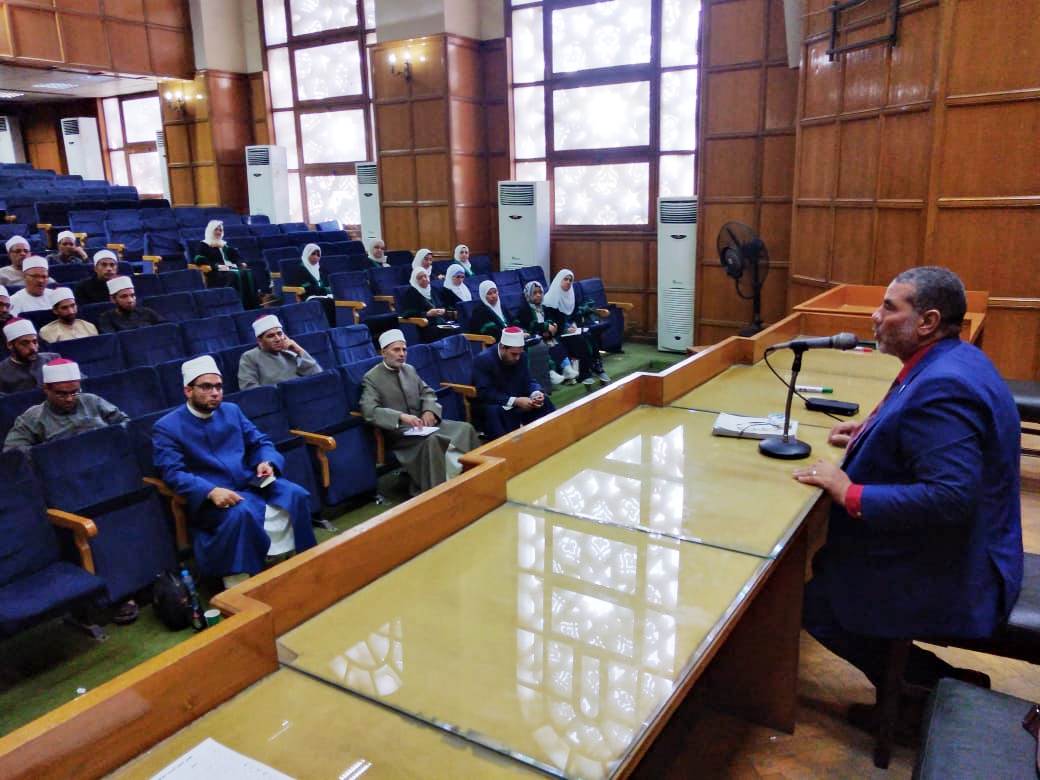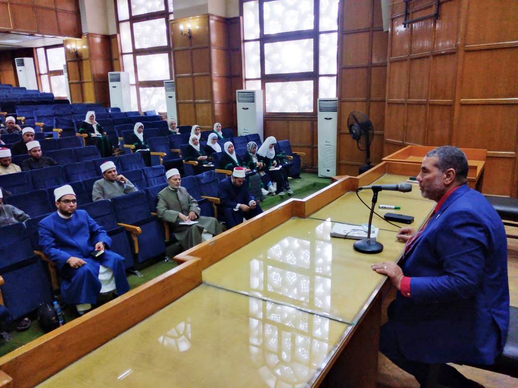 وخلال المحاضرة أكد الدكتور عوض إسماعيل، عميد كلية الدراسات الإسلامية والعربية السابق، على أهمية اللغة العربية في فهم النص القرآني، حيث إن القرآن الكريم كلام الله المعجز إعجازًا كاملًا في كل جوانبه، وإعجازه الأول هو إعجاز بياني لغوي، مبينًا أهمية النحو الوظيفي وكيفية ضبط اللسان.