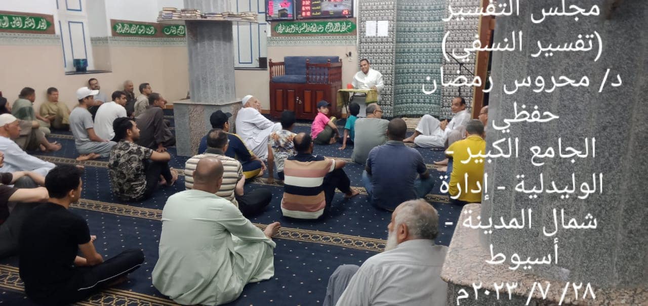 كما أقيمت فعاليات مجلس التفسير بمسجد الجامع الكبير بالوليدية التابع لإدارة أوقاف شمال المدينة، حاضر فيه الدكتور محروس رمضان حفظي.