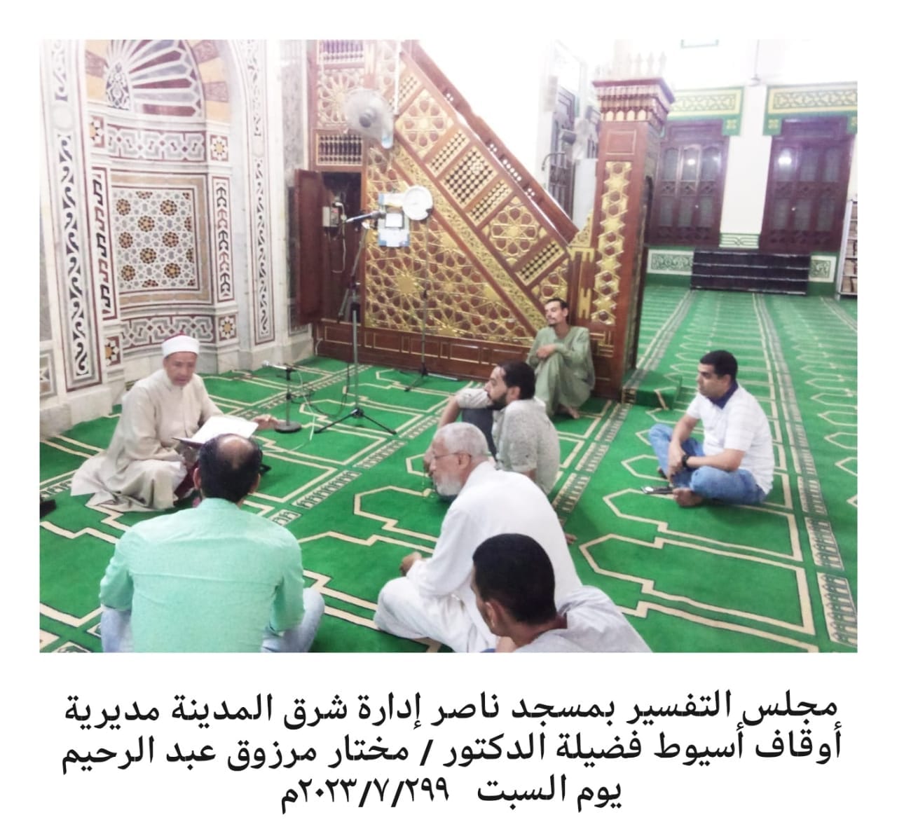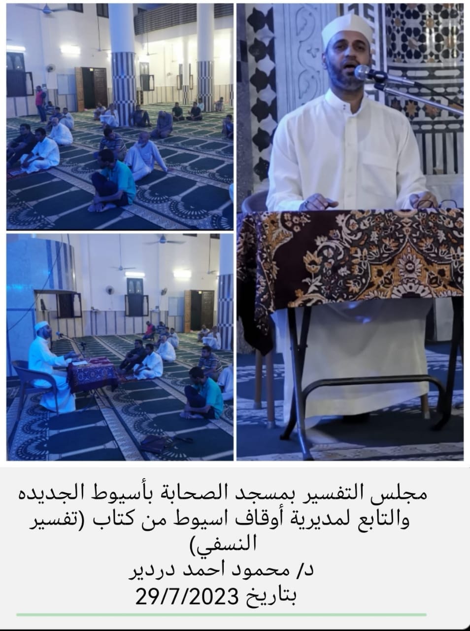 كما أقيمت فعاليات مجلس التفسير بمسجد الصحابة بأسيوط الجديدة، حاضر فيه الدكتور محمود أحمد دردير.