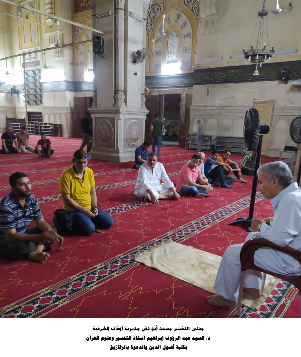 كما أقيمت فعاليات مجلس التفسير بمسجد أبو ذقن بالإبراهيمية، حاضر فيه الدكتور السيد عبد الرؤوف إبراهيم أستاذ التفسير وعلوم القرآن بكلية أصول الدين والدعوة بالزقازيق.