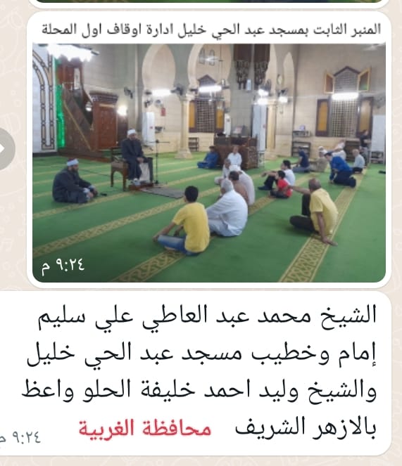 وفي مديرية أوقاف الغربية أقيم البرنامج بمسجد عبدالحي خليل، ومسجد الحنفي.