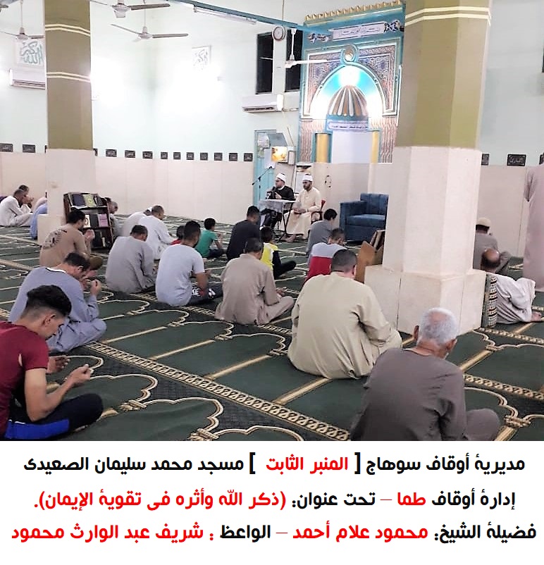 وفي مديرية أوقاف سوهاج أقيم البرنامج بمسجد الحق، والشهيد عبد المنعم رياض، ومسجد محمد سليمان الصعيدي، ومسجد أبو عقيل.