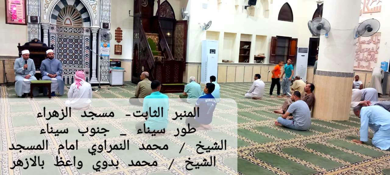 وفي مديرية أوقاف جنوب سيناء أقيم البرنامج بمسجد الوادي المقدس، ومسجد المصطفى ومسجد أبو صويرة، ومسجد الزهراء، ومسجد الفردوس، ومسجد الصحابة، ومسجد الرحمن، ومسجد التقوى، ومسجد المزينة، ومسجد أبو زنيمة، ومسجد الغريب.