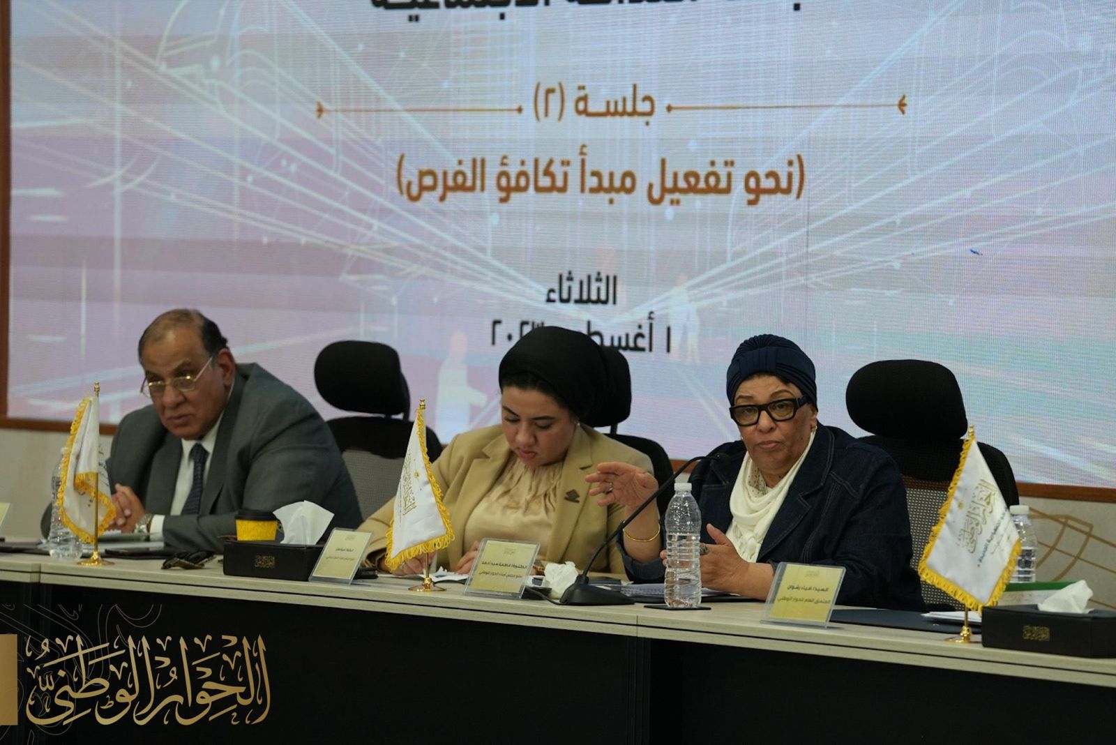 عقد الحوار الوطنى جلسة نقاشية عامة مُتعلقة بالمحور الاقتصادى لمناقشة عدة محاور من لجنة العدالة الاجتماعية تحت عنوان:"نحو تفعيل مبدأ تكافؤ الفرص"،وذلك بمركز القاهرة للمؤتمرات بمدينة نصر.