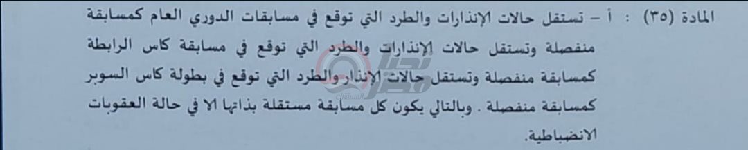 ووفقًا للائحة لجنة المسابقات، إن العقوبة التي تم توقيعها على اللاعب وتدخلت فيها لجنة الانضباط، يتم تطبيقها على جميع المسابقات المحلية، سواء الدوري أو كأس مصر أو كأس السوبر إلى جانب كأس الرابطة أيضًا.