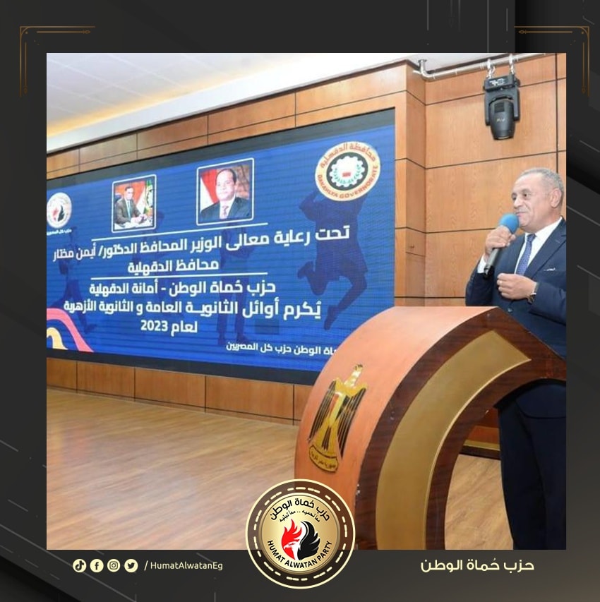 كما كرمت أمانة محافظة الدقهلية، أوائل الجمهورية بالثانوية العامة والثانوية الأزهرية، في احتفالية كبري وسط حضور جماهيري كبير، ويأتي ذلك في إطار الدور المجتمعي لحزب حماة الوطن في تشجيع الطلبة المتفوقين بكل محافظات مصر.