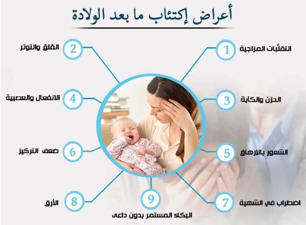 - قد تراود الأم المصابة أفكار تتعلق بإيذاء نفسها أو طفلها