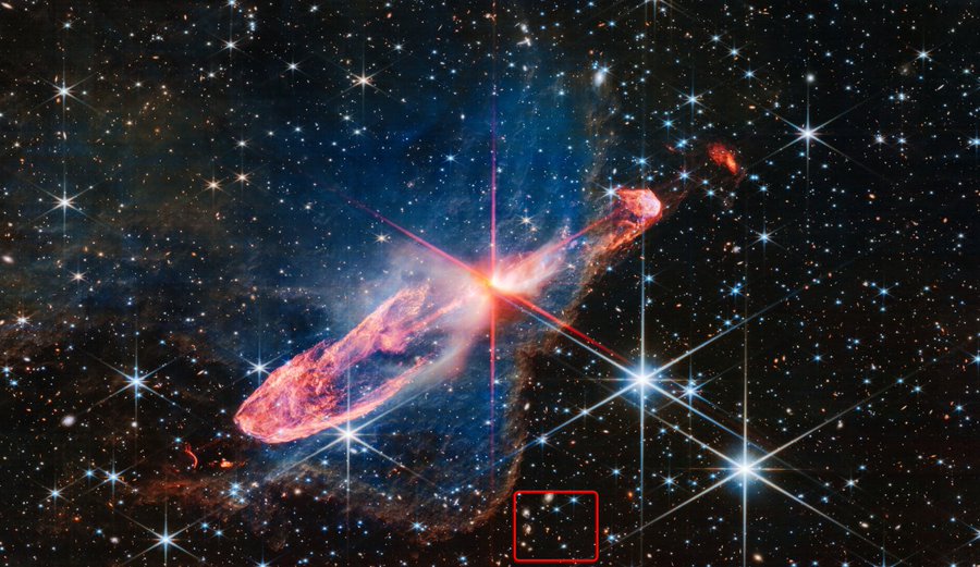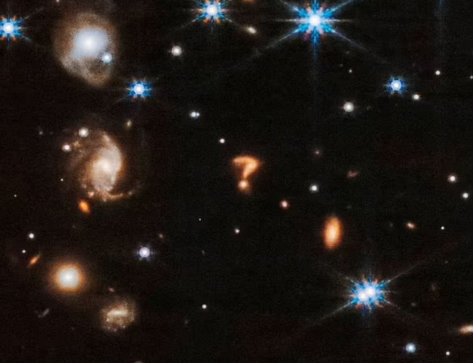 وفقًا لـ STScI، يخبر اللون الأحمر للكائن في صورة JWST العلماء أن الكائن بعيد جدا، أما لأكثر إثارة أنه قد تكون هذه هي المرة الأولى التي يرى فيها علماء الفلك علامة الاستفهام الكونية.