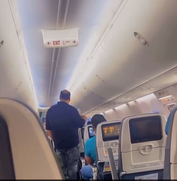 وظهر ركاب الطائرة ساخطين يشتكون من التأخير الطويل في مقطع آخر، حيث شوهد رجل يقف بفارغ الصبر بين المقاعد يحاول ان يبقي هادئًا في انتظار الأخبار.
