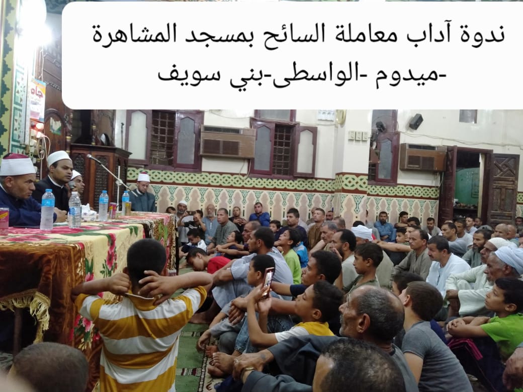 عقدت وزارة الأوقاف، بجميع مساجد مصر الكبرى، عدة ندوات تحت عنوان: "آداب معاملة السائح"، وذلك في إطار دور وزارة الأوقاف الدعوي والتثقيفي والوطني، والهادف إلى التعريف بأهمية السياحة وآداب معاملة السائح.