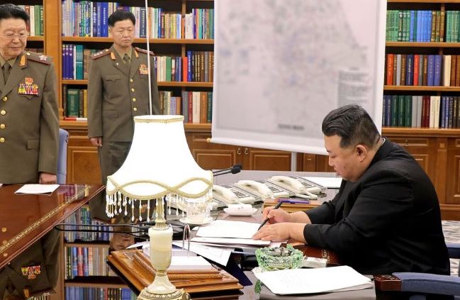 وأظهرت الصور التي نشرتها وكالة الأنباء المركزية الكورية، "كيم" وهو يشير إلى "سيول" والمناطق المحيطة بالعاصمة الكورية الجنوبية على خريطة.