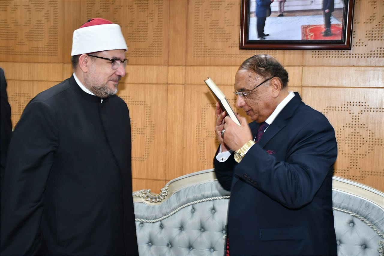كما أهدى الدكتور محمد مختار جمعة، وزير الأوقاف، المستشار مسعد عبد المقصود بيومي، رئيس هيئة قضايا الدولة، نسخة من كتاب الله، ونسخة من "موسوعة الثقافة الإسلامية".