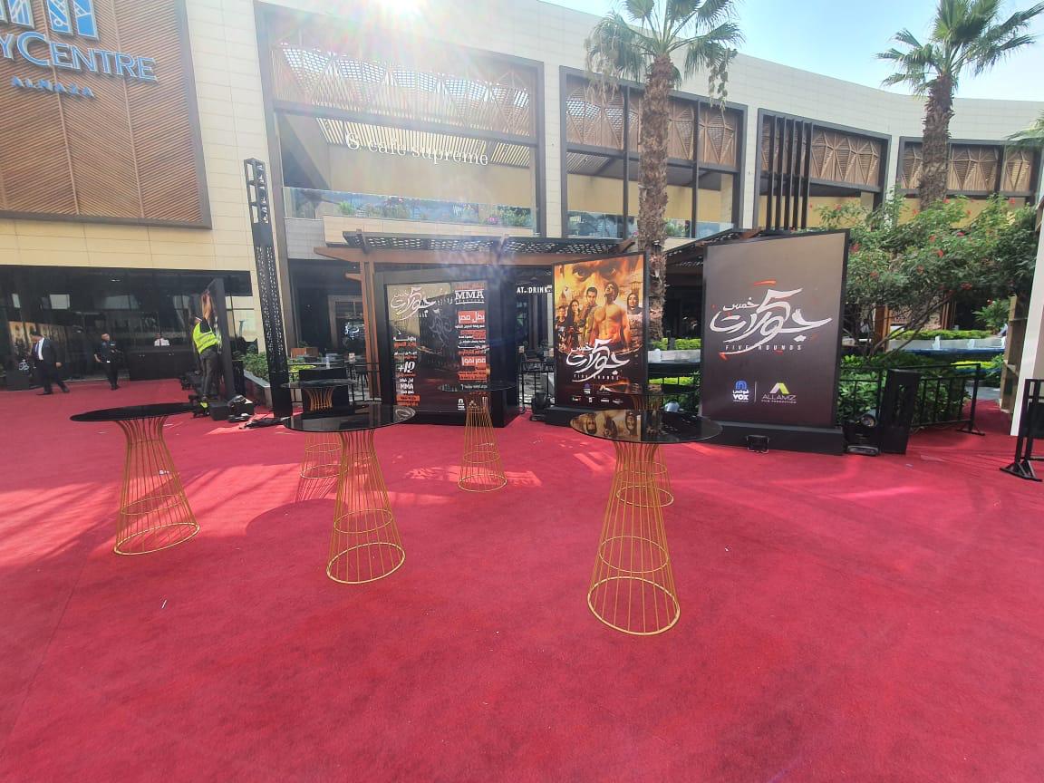 قبل ساعات من انطلاقه.. الاستعدادات النهائية لـ العرض الخاص لفيلم خمس جولات| صور