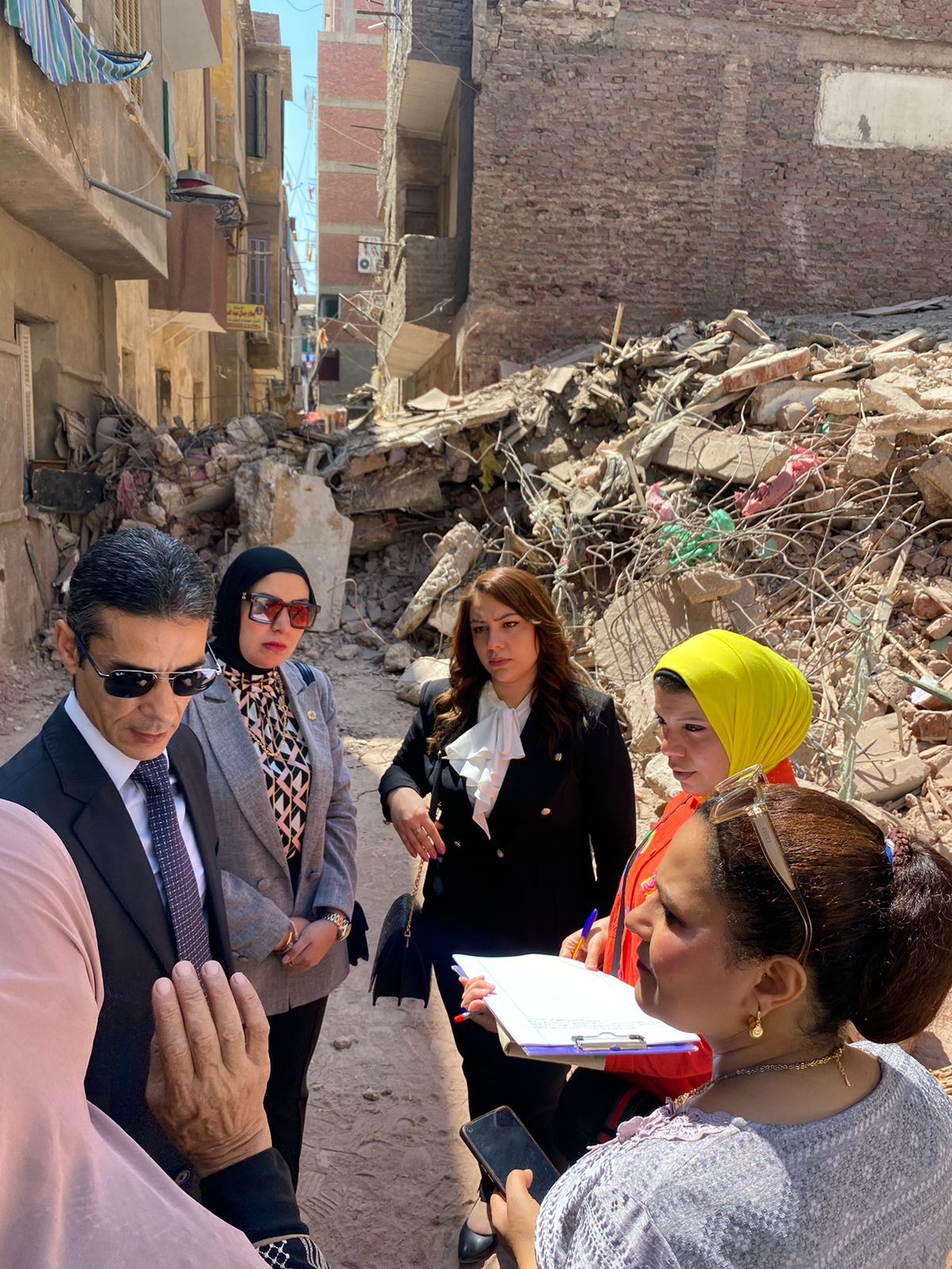 انتقل فريق من النيابة برئاسة المستشار أسامه عليوة - القائم بعمل مدير النيابة، ومعه كلًا من نورهان مخلوف وكيل النيابة، نجلاء عزمي وكيل النيابة، لموقع العقار لإجراء المعاينة، ورافقهم كلٍ من رئيس حي حدائق القبة، ومهندس التنظيم بالحي، ومالكة العقار.