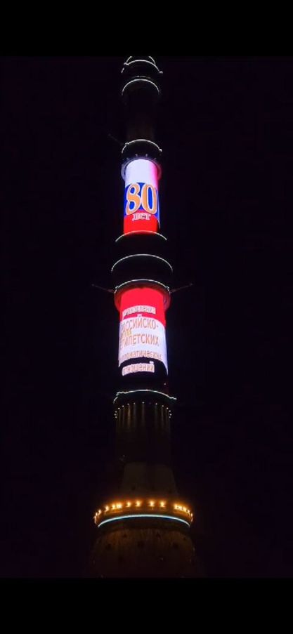 وتعبيراً عن خصوصية هذه المناسبة، فقد تم إضاءة مبنى وزارة الخارجية بماسبيرو بالقاهرة بشعار "مصر 80 روسيا"، وكذا إضاءة برج الإذاعة والتلفزيون Ostankino Tower بالعاصمة موسكو، والذي يعد من أطول الأبراج في القارة الأوروبية، في مبادرة تستهدف التعريف والإعلان عن هذه المناسبة لدى المواطنين المصريين والروس.