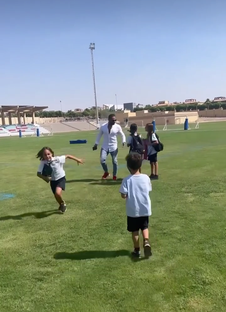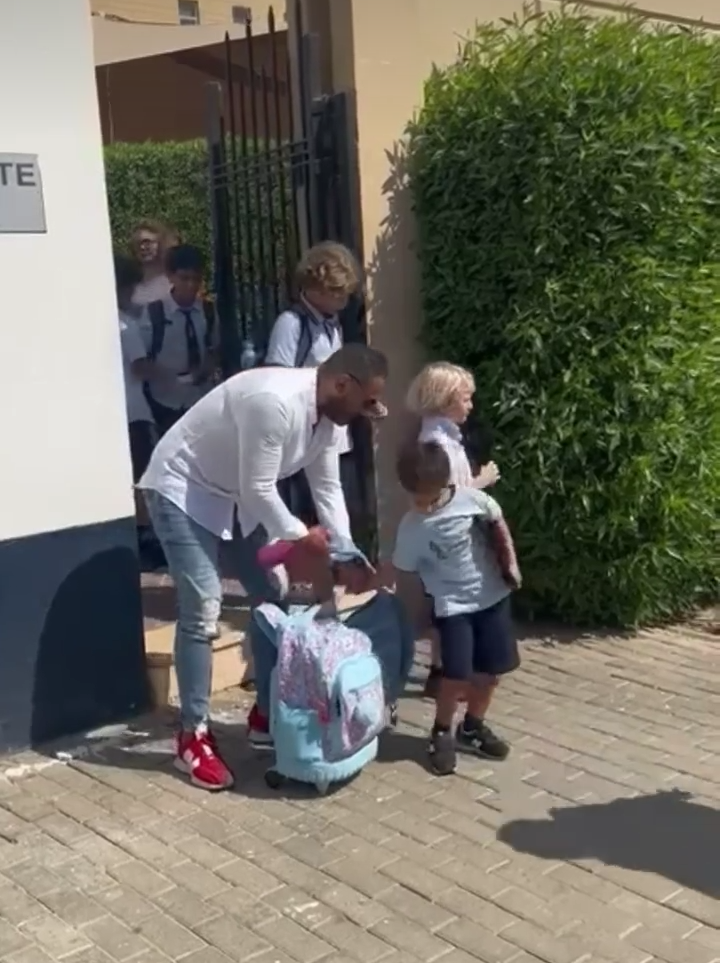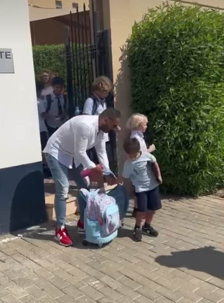 وظهر تامر حسني في الفيديو الذي شاركه عبر انستجرام وهو يلعب مع أولاده في المدرسة ويوصلهم بنفسه إليها ويصطحبهم أثناء العودة، في وجود طليقته بسمة بوسيل.