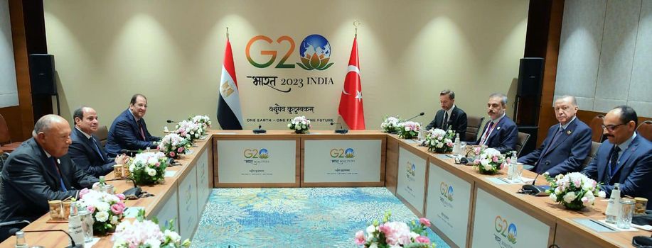 التقى الرئيس عبد الفتاح السيسي ونظيره التركي رجب طيب أردوغان، بنيوديلهي بالهند، على هامش المشاركة في قمة مجموعة العشرين.