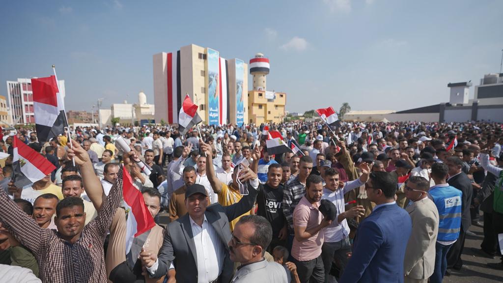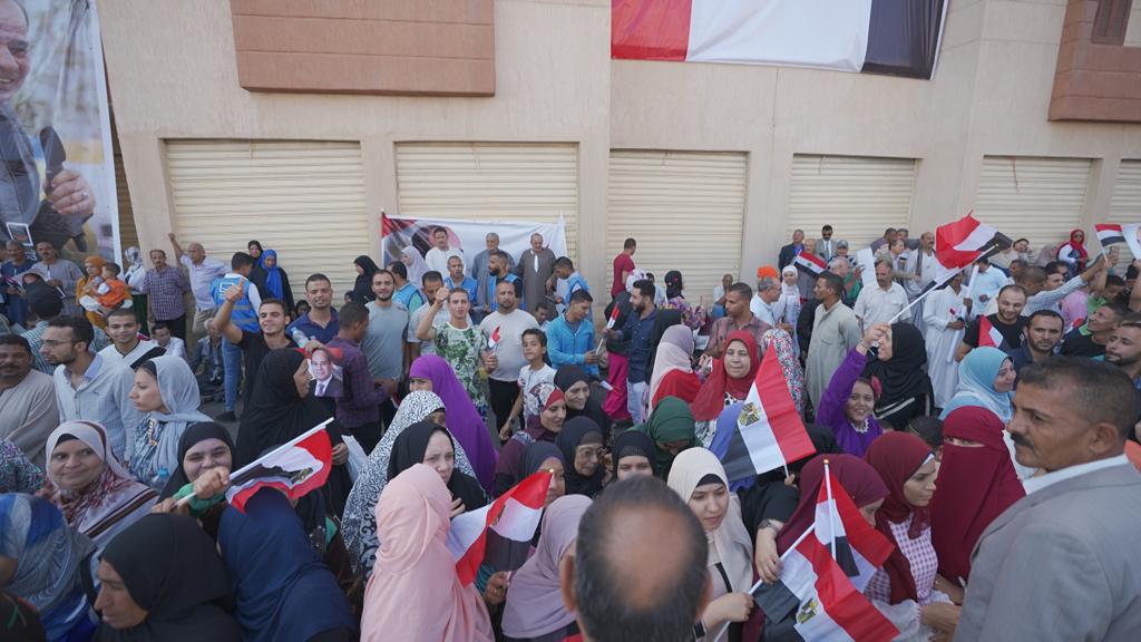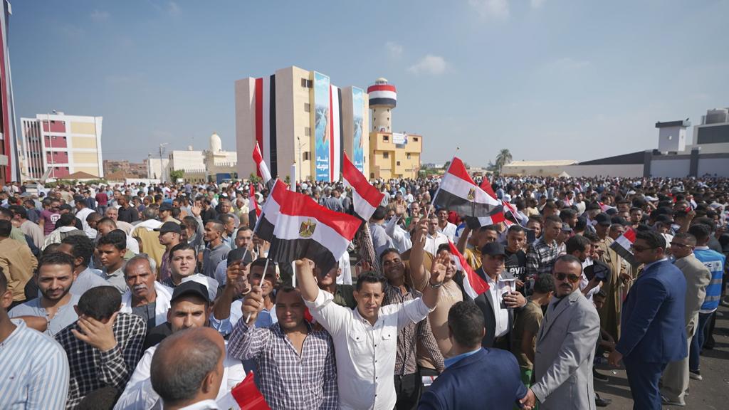 آلاف الحشود في بني سويف يرفعون صور السيسي استعدادا لزيارته لقرية سدس الأمراء