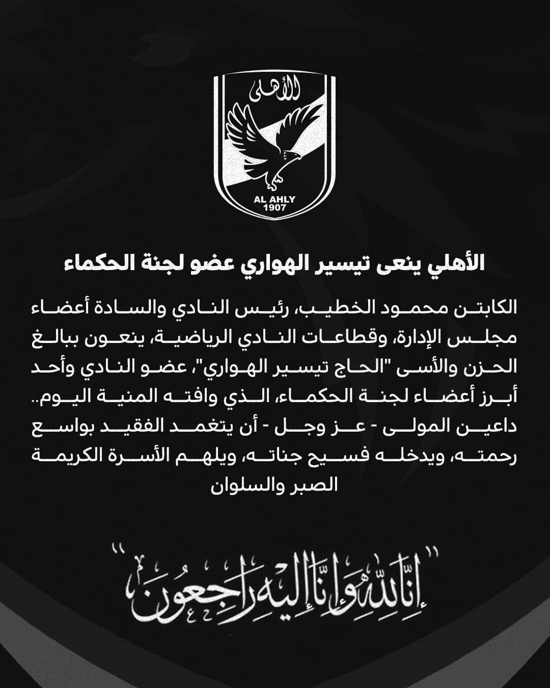 الأهلي ينعى تيسير الهواري عضو لجنة الحكماء