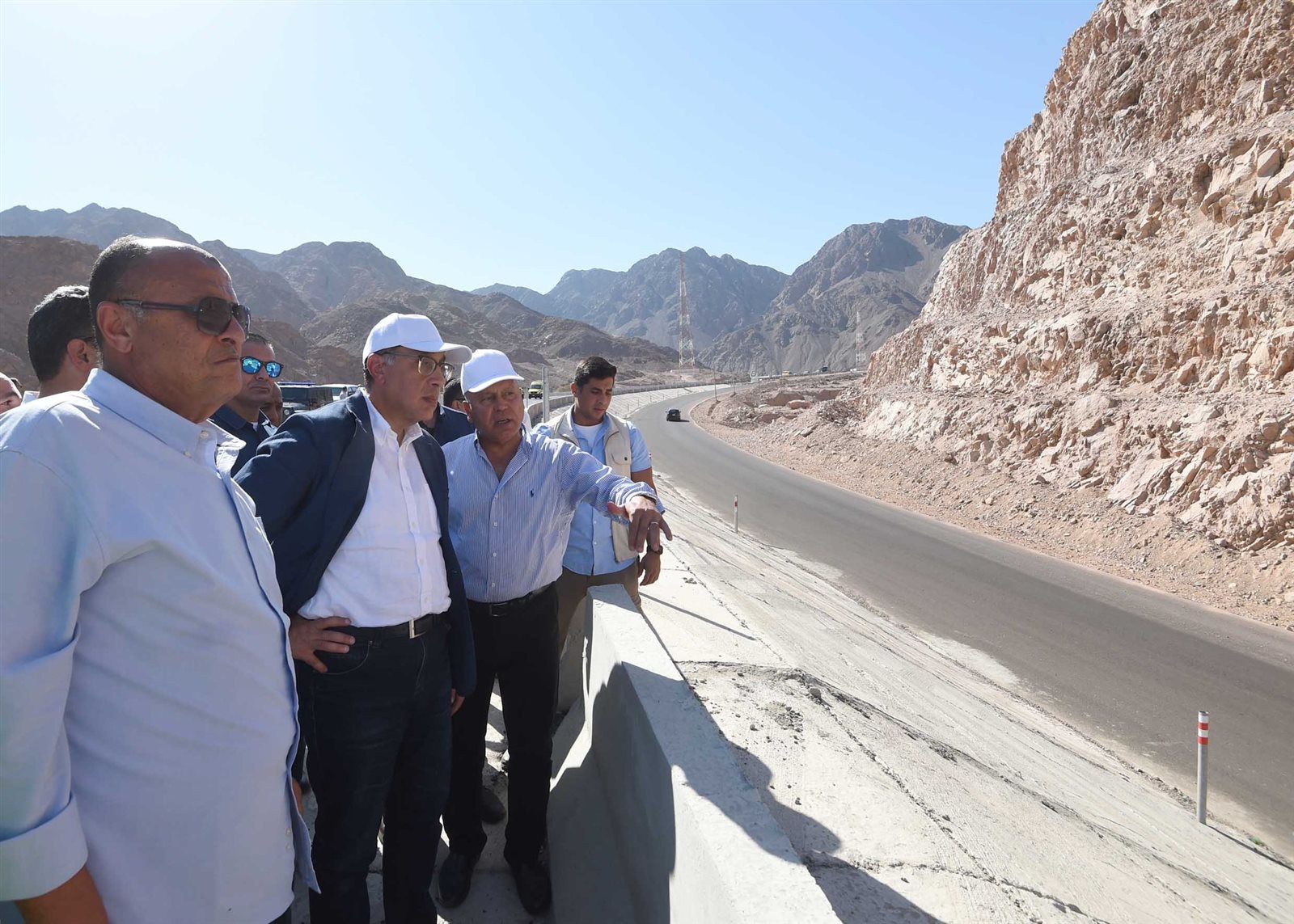 رئيس الوزراء يتفقد أعمال تطوير ورفع كفاءة طريق دهب-نويبع