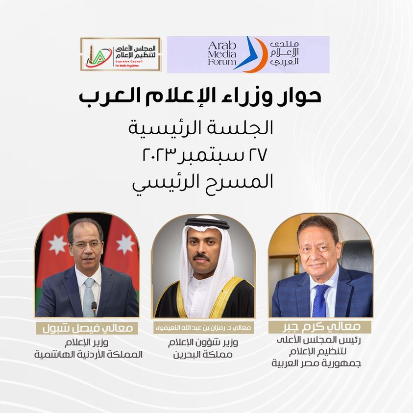 ويشارك رئيس المجلس الأعلى لتنظيم الإعلام كمتحدث رئيسي في الجلسة الرئيسية، والتي تقام تحت عنوان "حوار وزراء الإعلام العرب"، بمشاركة د/ رمزان بن عبد الله النعيمي، وزير شئون الإعلام بمملكة البحرين، وفيصل شبول، وزير الإعلام بالمملكة الأردنية الهاشمية، وتناقش الأسباب الحقيقية وراء أزمات الإعلام العربي، والأسباب التي أدت لتراجع مستوى التفاعل بين الإعلام والشعوب العربية، ومدى مواكبة الخطاب الإعلامي العربي للتحولات الإقليمية والعالمية الراهنة.