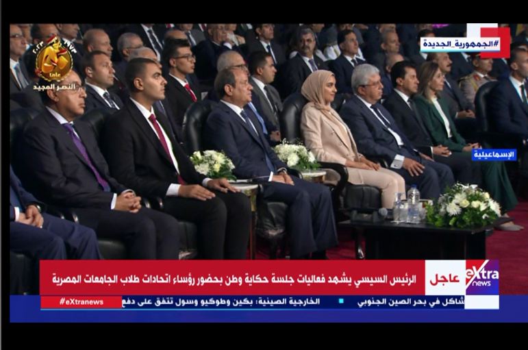 الرئيس السيسي يشهد فعاليات جلسة حكاية وطن بحضور رؤساء اتحادات طلاب الجامعات المصرية