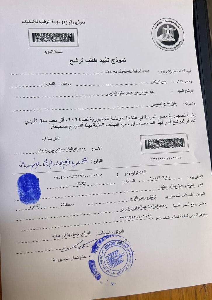 رئيس الحزب الناصري يوقع توكيلا لترشيح الرئيس عبدالفتاح السيسي