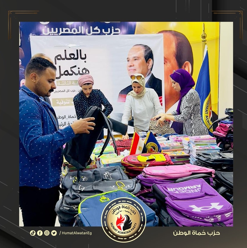 حملة حماة الوطن «وكلتك كمل مسيرتك».. مستمرة لجمع توكيلات من المواطنين على مستوى الجمهورية لدعم ترشح السيسي.. والحزب يواصل توزيع شنط وأدوات الدراسة علي الأسر الأكثر احتياجًا بالمنوفية وسوهاج.. صور