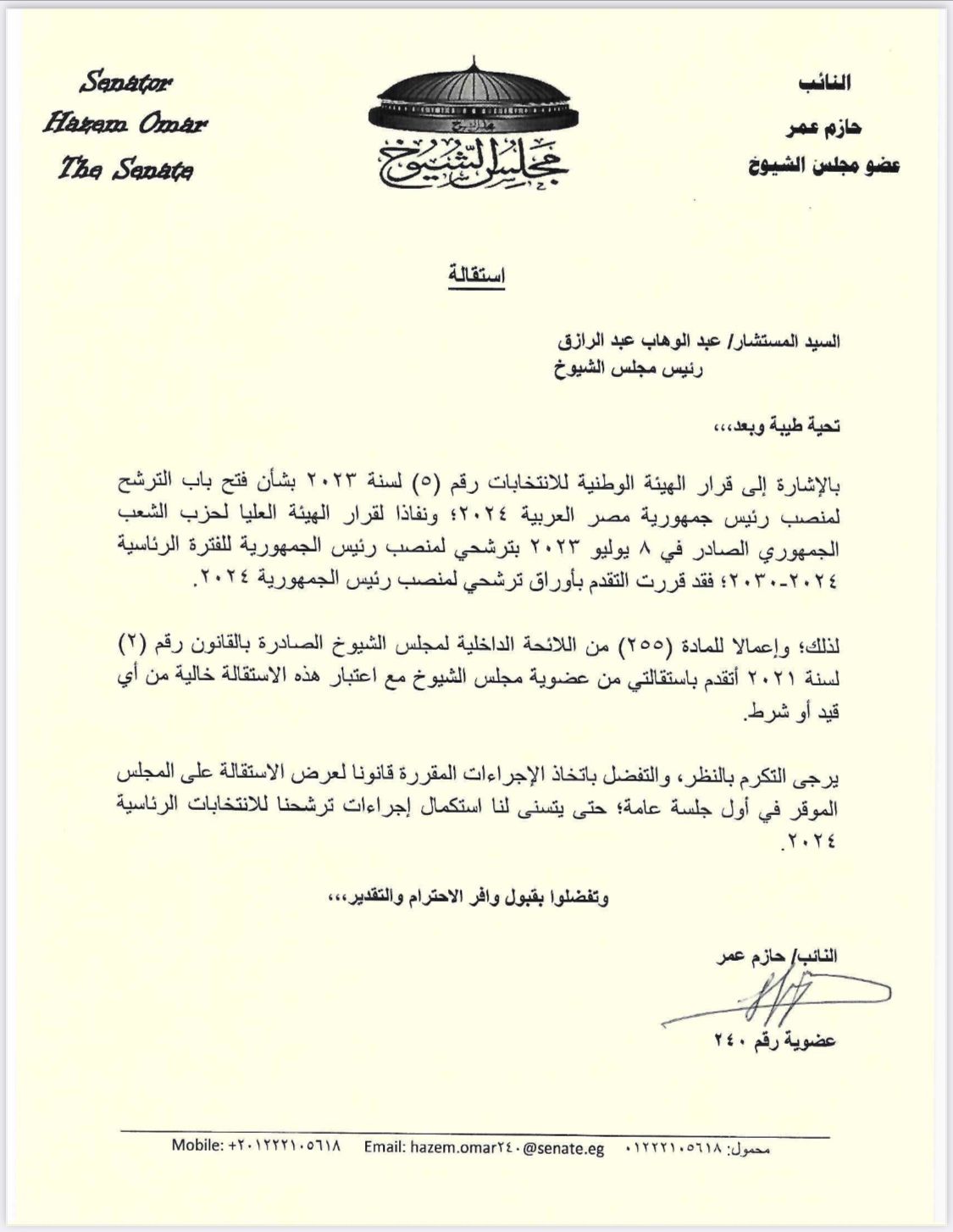 الهيئة البرلمانية لحزب الشعب الجمهوري توقع نماذج التزكية لدعم المهندس حازم عمر لخوض الانتخابات الرئاسية