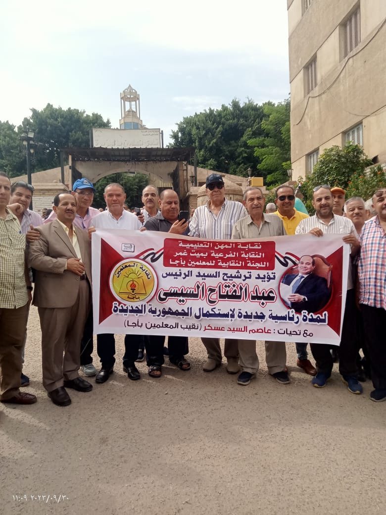 وتابع نقيب المعلمين: رسالتنا هي التأييد المطلق للرئيس عبد الفتاح السيسي في الانتخابات الرئاسية القادمة 2024، مضيفا: ولا يخفى على كل ذي عقل رشيد ما تمر به الدولة المصرية من تحديات، كما لا يغفل على أحد وجود المتربصين بالدولة المصرية من قوى الشر.