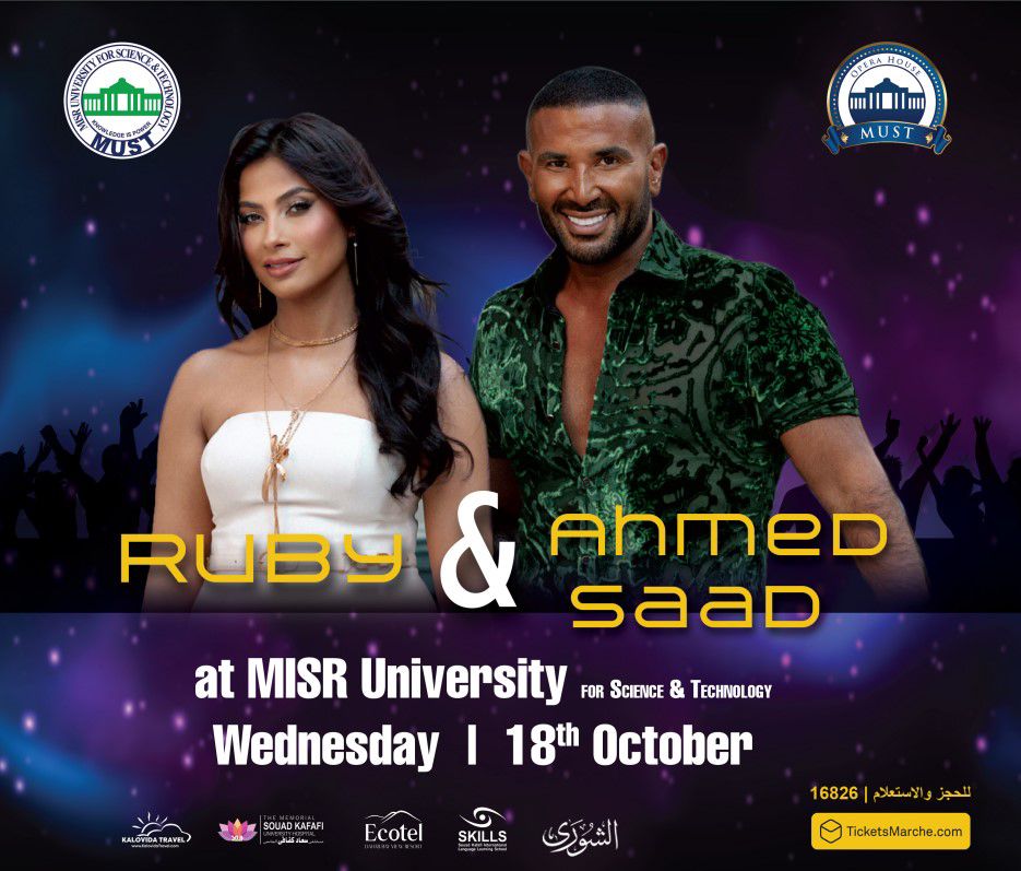 18 أكتوبر.. أحمد سعد وروبى يستعدان لـ إحياء حفل في جامعة مصر للعلوم والتكنولوجيا