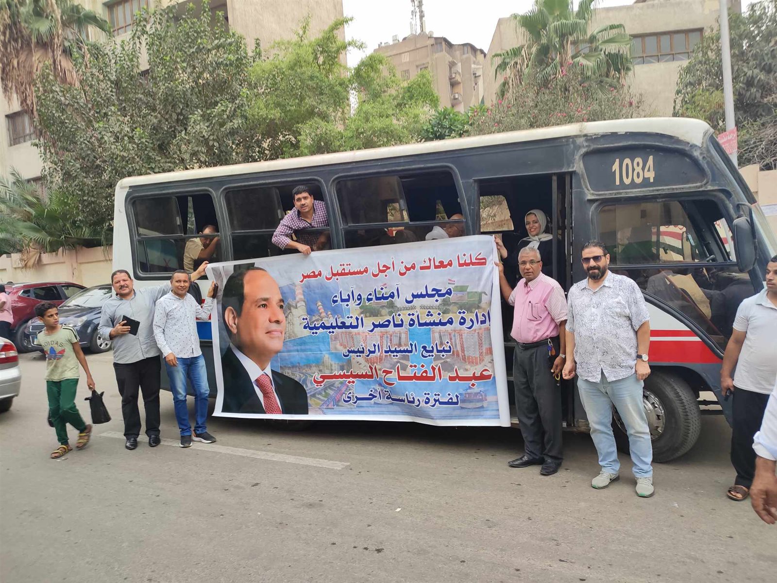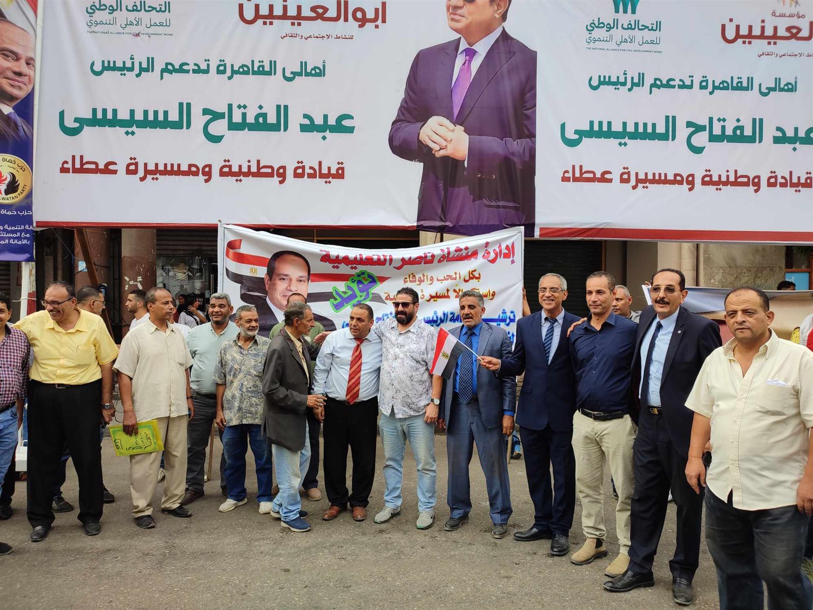 وتجمع مجموعة أخرى رافعين لافتة " كلنا معاك من أجل مستقبل مصر"، تحت إشراف مجلس أمناء وأباء إدارة منشأة ناصر التعليمية، معلنين مبايعتهم للرئيس عبدالفتاح السيسي للترشح لفترة رئاسية جديدة.