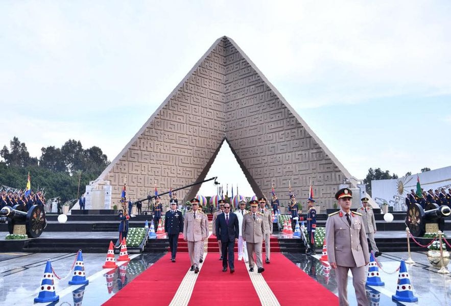 قام صباح اليوم الثلاثاء الرئيس عبدالفتاح السيسي رئيس الجمهورية القائد الأعلى للقوات المسلحة، يرافقه الفريق أول محمد زكي القائد العام للقوات المسلحة وزير الدفاع والإنتاج الحربي، والفريق أسامة عسكر رئيس أركان حرب القوات المسلحة، بوضع إكليل من الزهور على النصب التذكاري لشهداء القوات المسلحة بمدينة نصر.