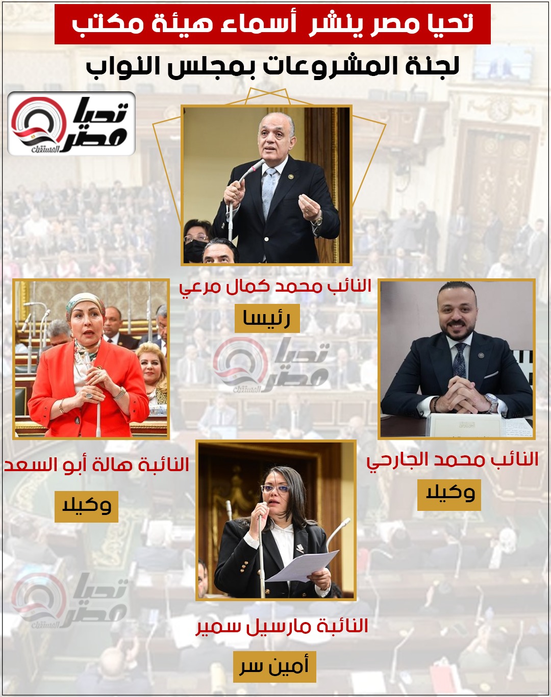 والنائبة د. هالة أبو السعد وكيل أول اللجنة ، ومحمد الجارحي وكيل اللجنة ، ومارسيل سمير أمين سر اللجنة .