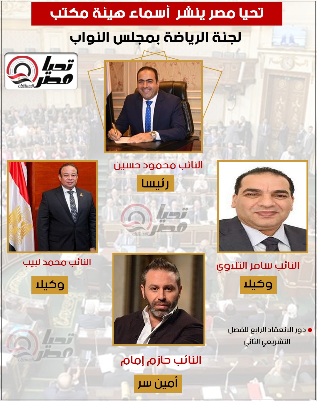 أسفرت نتائج انتخابات هيئة مكتب لجنة الشباب والرياضة بمجلس النواب لدور الانعقاد الرابع من الفصل التشريعي الثاني عن فوز الدكتور محمود حسين برئاسة اللجنة بالتزكية للمرة الرابعة على التوالي، و فوز كل من النائبين سامر التلاوي ومحمد لبيب وكيل بمقعدي الوكالة وحازم إمام أمين سر اللجنة